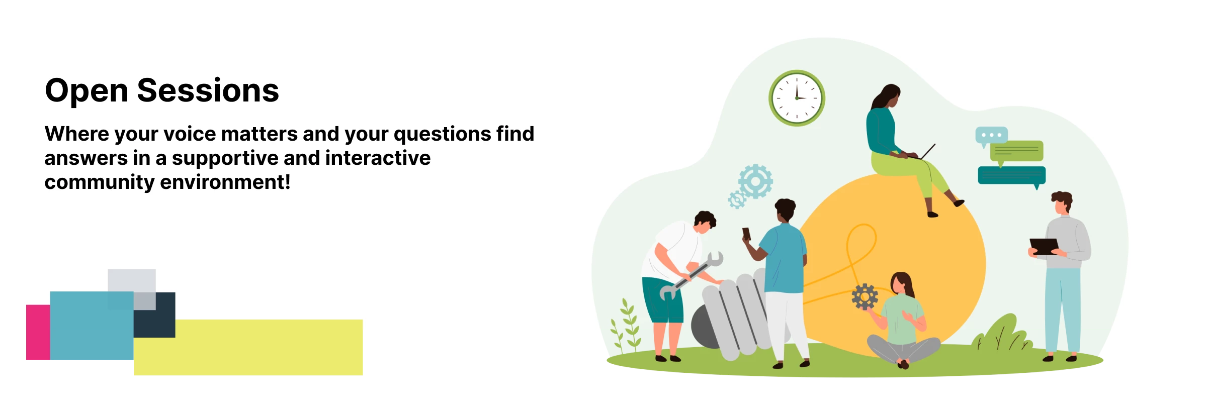 Join us for Open Sessions, running Monday through Thursday every week. With sessions carefully scheduled to accommodate global time zones, choose the day that suits you best – or join us for an enriching experience every day!